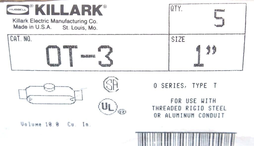 BOX OF 5 NEW KILLARK OT-3 CONDUIT BODIES 1" TYPE T, O SERIES, OT3
