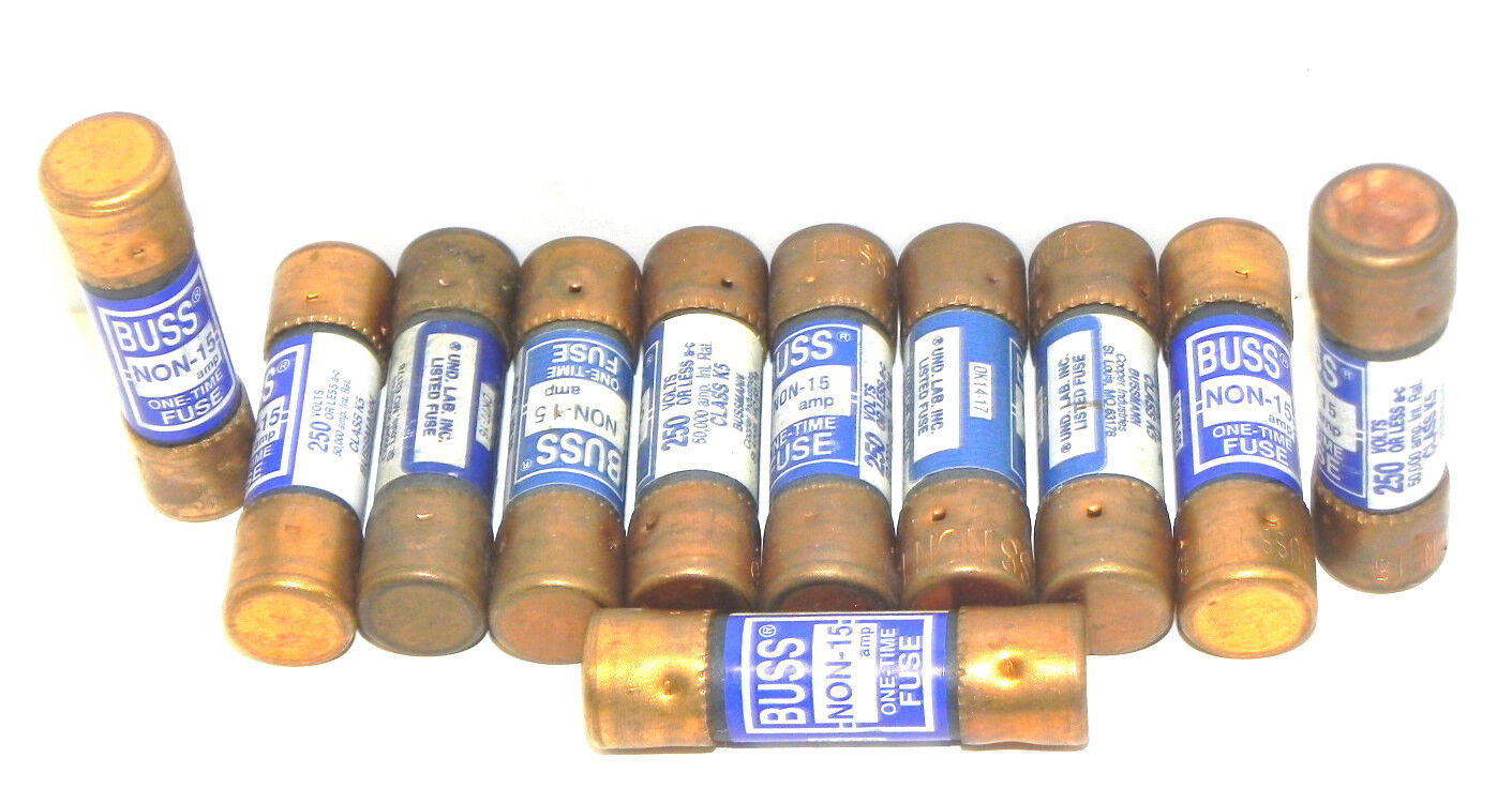 LOT OF 11 BUSSMANN NON-15 ONE-TIME FUSES NON15