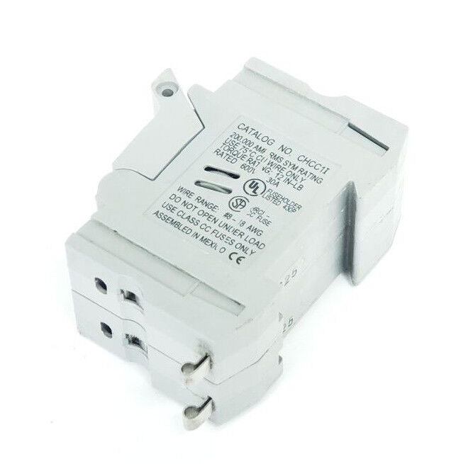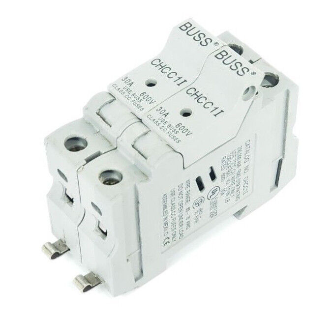 LOT OF 2 COOPER BUSSMANN CHCC1I FUSE HOLDERS 30A, 600V, W/ KTK-R-3 FUSES
