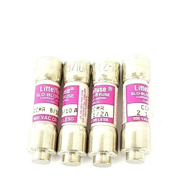 LOT OF 2 NEW LITTELFUSE CCMR 2 1/2A SLO-BLO FUSES & (2) CCRM 8/10A CLASS CC