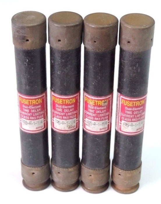 LOT OF 4 BUSSMANN FUSETRON FRS-R-1-1/4 FUSES 1.25AMP 600V CLASS RK5 TIME DELAY