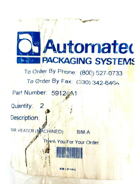 NEW AUTOMATED PACKAGING SYSTEMS 59124A1 MACHINED HEATER BAR