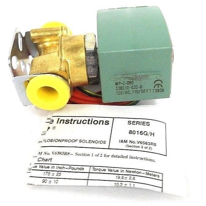 NIB ASCO 8262G090VM SOLENOID VALVE 120/60 - 110/50, 1/4 PIPE, MP-C-080