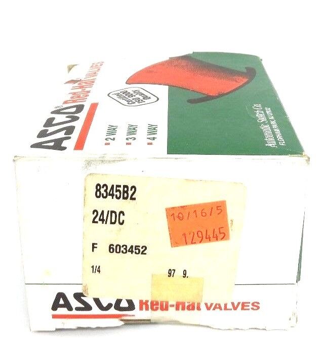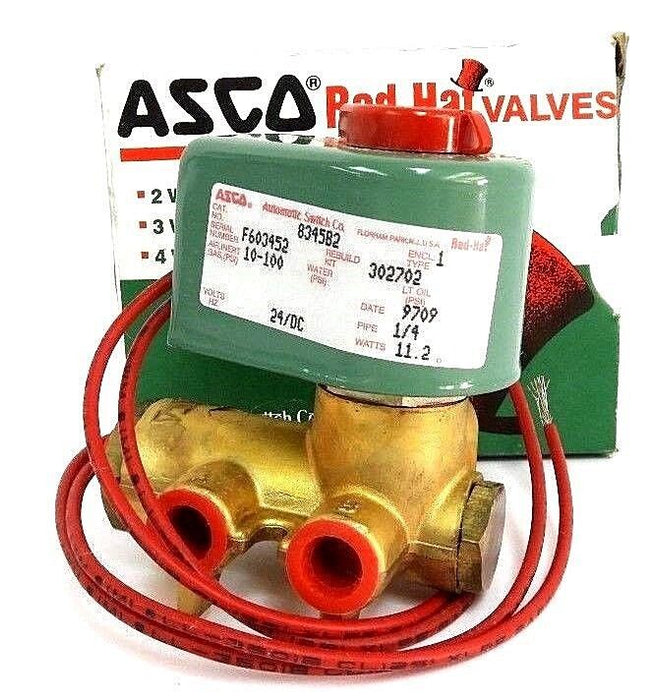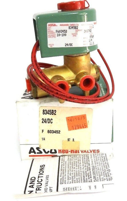 NIB ASCO 8345B2 SOLENOID VALVE 24/DC, 1/4 PIPE, 11.2 WATTS, 10-100PSI