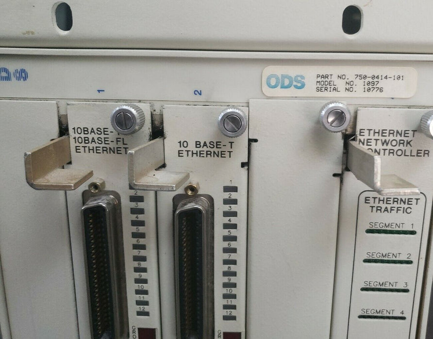 ODS OPTICAL DATA SYSTEMS 750-0414-101 MODEL 1097 4SLOT CHASSIS W/ 1094-BTM, 1094-BTML & 1094-ENC4-040
