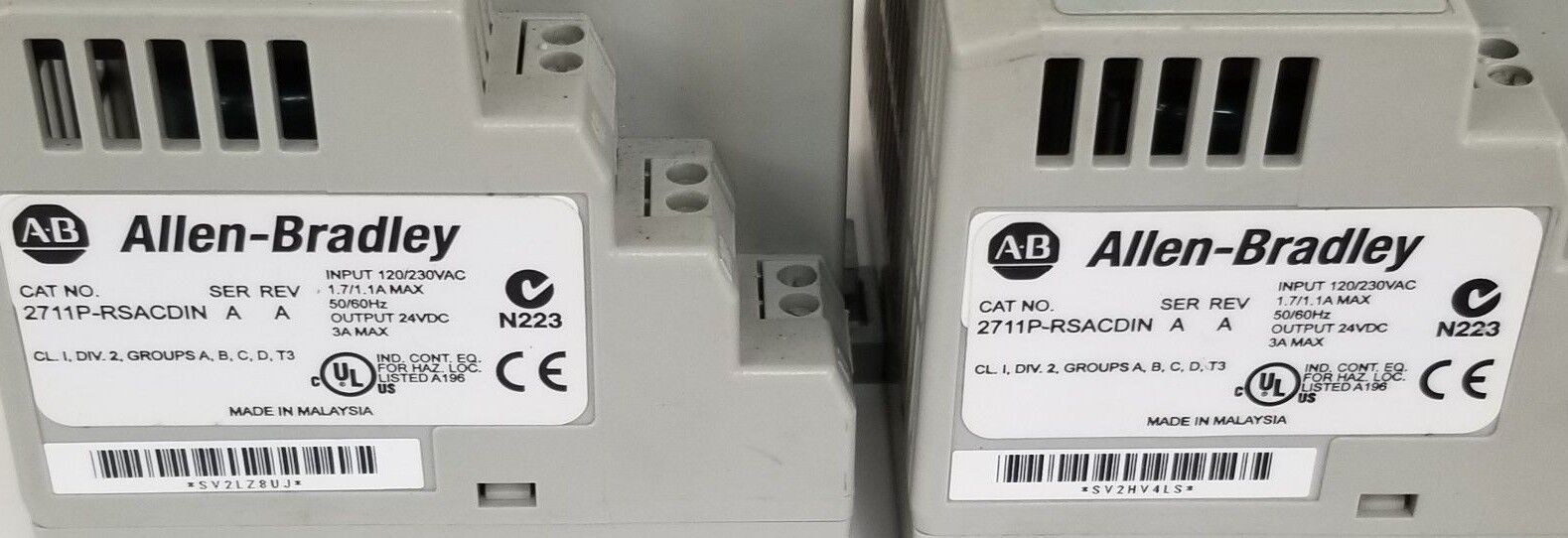 LOT OF 2 ALLEN BRADLEY 2711P-RSACDIN POWER SUPPLY SER. A REV A. 24VDC, 2711PRSACDIN